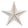 The Antique White Barn Star is a decorative star figurine made of metal with a soft cream finish and vintage rust detailing. This star makes a wonderful addition to the home year-round and can be hung on a wall or propped on a shelf for display. Measures 5.5” in diameter and .75” deep.