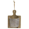 Gray Round Baskets with Handles sell as a set of three whitewashed, woven willow baskets. Baskets have a neutral gray finish, and each includes a plastic liner for use as a planter. Baskets include stiff carrying handles that are wrapped with gray felt and detailed with shiny, silver rivets. Smallest basket is 6.25" diameter by 4.75" high. Middle basket is 8.5" diameter by 6.25" high. Large basket is 10" diameter by 7" high. Measurements do not include handles. Floral not included.