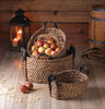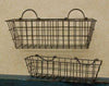The hanging Grapevine Wall Basket is made of woven willow twigs with braided edges and a natural finish, topped with a braided jute hanger. It is 10" tall, 9" wide, and 2¾" deep.