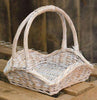 Wooden Basket with Handle has a solid bottom with sides made of wood slats. It comes with a wooden handle and measures 9" high by 16" wide and 9-1/4" deep.