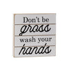 The Scrub-A-Dub-Dub Highland Block is a decorative wooden block sign with a white shiplap background. The sign reads “scrub-a-dub-dub in black lettering and features a baby highland calf, resting inside of a metal washtub surrounded by mud splatters. This sign is charming and perfect for a farmhouse theme and bathroom space, displayed freestanding. Measures 4” high by 9.5” wide by .75” deep.