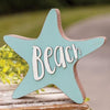 Beach House Engraved Block, 24 features navy blue paint and an engraved star fish design for a cozy beach look. It reads, “beach house” in carved lettering and boasts two keyhole slots for wall display. It can be set above a shelf or mantelpiece and measures 3.5” high by 24” wide. Made in the USA.