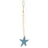 The Beaded Seashells Garland is a decorative miniature garland with an ivory string base and loops on either end. The garland is strung with wooden beads and features white and blue wooden charms in the shape of shells and starfish. Display this garland strung across a tray, frame, or other space in the home for a fun, beachy feel during the summer season. Measures 31” long.