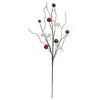 Medium Red/Green/White Jingle Bell & Star Pick is a medium-sized pick decorated with various sizes of red, green, and white jingle bells, as well as three sparkling white star cutouts. The base of the pick is flexible and brown in color, with a handful of bare, twisted branches to communicate a simple, country aesthetic. Use this pick in a Christmas floral arrangement or on its own in a jar or vase. Pick measures 20.75” tall and 8” at its widest.