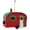 Red Roof Bird House is a rustic wooden birdhouse with a painted, distressed finish in burgundy and ivory colors. The base of the birdhouse is accented with a corrugated metal trim. Measures 10" high by 7" wide and 5¼" deep.