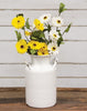 Gray Metal Milk Bucket is a dark, charcoal gray container with handles and a lightly speckled finish. This decorative bucket is perfect for displaying faux floral stems around the farmhouse. Measures 8.25" high by 5" wide.