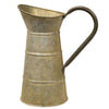 Santorini Cup is a metal cup with a pewter-like, distressed finish and an antique-style design. Cup has two ornate, swirled handles, and a stem that morphs into a corrugated, textured base. Measures 8.5" high by 9.5" wide and 6" deep.