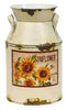 Metal Sunflower Canister is an assortment of three galvanized metal canisters. Canisters feature removable lids and vintage sunflower adverts that are perfect for adding country charm to any room. Canister has a red advert that reads, "premium sunflower seeds" in bold white text, a black advert that reads, "sunflower farm - sunshine on a stem," in white lettering, or a white advert that reads, "sunflower farmers market" in black lettering. They can be used to store knick-knacks or as a vase to display florals and measures 7" high by 4.5" wide.