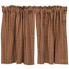 Add country style you your living room in minutes with our set of two Burgundy Check Panels! The window panels feature a burgundy and tan checkered pattern and are made from 100% cotton. Display loose on standard size curtain rods to control the amount of sun in your space for a relaxed, casual look. Curtains can also be displayed with their included coordinating tie-backs for a more polished and traditional country appearance.