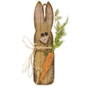 24" Chubby "Welcome" Bunny on Base is a freestanding primitive wood bunny that is proudly made in the USA. Bunny has a raised wooden nose, a floral accent with brown-wrapped wire stems, pip berries, dried vine, and grungy metal stars, and a wooden sign that reads, "welcome" in black lettering over weathered white paint. Bunny has a tan finish with pink on its nose and ears and it is further accented by a gingham scarf and raffia. Measures 25" high by 13" wide