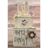 Uncle Carl Rabbit is a stuffed bunny doll with a weighted bottom and wired, poseable ears. He wears a pair of khakis and a plaid shirt with jingle bell accents. He also holds a stuffed bag in his hands that is primitively stitched with the word, "Seed." Carl is 28" tall (with ears fully extended), 6½" wide and 8" deep. He is approximately 18" high in a seated position.