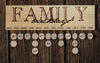 Display your calendar on the Family Calendar Holder! This black wooden calendar holder is painted with the word "Family" across the top in white. It has a calendar hook and a tray at the bottom for keeping a pen handy. It comes with a nail hole at the top for easy hanging and measures 32" high by 14½" wide.