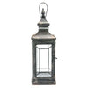 Everlasting Glow Tabletop Square Lantern is made with a black metal frame. Lantern has an open-air design and a flat bottom for shelf or table display. It is battery-operated and is lit by a built-in pillar candle that flickers and glows on a 5-hour timer, but requires three C batteries (not included). Measures 14" high by 7" wide.