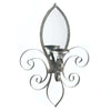 Weight 1 lb. Iron and glass. Candle not included. 5" diameter x 9 1/2" high. UPC: 849179000707