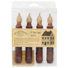 Enjoy warm, flickering candlelight, without the flames! LED pillar with a antique ivory real wax candle sleeve and grungy cinnamon coating. Switch on bottom turns candle on, off, or sets the internal timer on for 6 hours, off for 18. Candle will switch back on at time it is set! Average life is 40-48 hours on 3 AAA batteries (not included). 3-1/2 tall and 3 wide.
