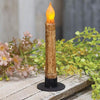 4/Pkg Burnt Burgundy LED Tapers is a set of four battery-operated taper candles with an antiqued wax coating. Tapers are burgundy in appearance and feature a rustic texture and flame-shaped tips that cast a soft, flickering glow when turned on. Easily twist at the bottom to turn on/off and to insert batteries. Tapers are for indoor use and require 2 AA batteries (not included) to operate. Measures 6" high.