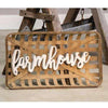 Family Star Shadowbox Sign is a wooden sign with a recessed, shadowbox design. Sign has a whitewashed, slatted background and features a wooden star cutout with a galvanized metal panel that displays the word, "Family." Hangs on two sawtooth hangers. Measures 15" square by 1¾" deep.