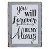 It Was Always You Framed Sign is a wooden sign with a natural wooden frame. Sign has a stormy gray painted background that displays, "it was you... it was always you," in white, mixed-font lettering. Give as an anniversary or Valentine's Day gift to the one you love! Sign is recessed with a gap in the back for wall hanging, or it can also be displayed tabletop. Measures 13" square by 1.5" deep.