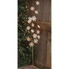 The Buffalo Check Bunny Sitter is a decorative wooden figurine with a sitting bunny silhouette and a green and white buffalo check pattern. The bunny is adorned with a green ribbon bow, as well as a pair of pink tulips at the base. This bunny displays freestanding, perfect for bringing a festive Easter touch to a tray, table, or shelf in the home. Measures 7” high by 4” wide by .75” deep.