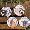The Stuffed Sheep Ornament is a decorative plush sheep figurine ornament made of ivory linen-style fabric. The sheep has simple face, ear, and tail details, as well as a rusty bell collar and wooden standing legs. The ornament includes a string hanger to use for displaying on a tree, knob, or hook for a primitive farmhouse touch to the home. Measures 5” high by 7” wide by 2” deep.
