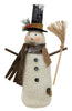 The primitive fabric Santa w/Long Coat features star and jingle bell accents. He holds a decorated pine tree and stands 16" high.