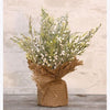 Aspen Pine Table Tree features wispy pine branches inside a burlap-wrapped base. It is 17 high.