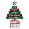 Felt and Wood Primitive Tree Ornament is a unique tree ornament with a wood frame and a spool trunk that is wrapped with jute. Tree has a red and green fabric backing with a rusty jingle bell accent at the top. Ornament includes a wire spiral hanging hook for display. Measures 3.25 wide by 1 deep and 7 high.