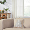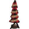 The Tree Ticking Star Ornament is a decorative plush star figurine made of red and ivory ticking stripe fabric. The star features a green fabric tree patch, complete with a jingle bell garland and gold star topper. The top of the ornament has an ivory string to use for a hanging display, bringing a rustic, primitive touch to a Christmas tree during the holiday season. Measures 5.5” in diameter and 1” deep.