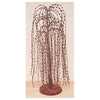 8 Red Ticking Stripe Fabric Christmas Tree Ornament 7.5 is a fabric ornament with a white wooden base. Ornament has a red striped finish and comes ready to hang by a string hanger attached at the top. It looks great hung or displayed freestanding and measures 7.5 high by 3.5 wide by 1.5 deep.