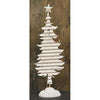 Stuffed Tree Poke is made of cinnamon-dusted, green aged fabric and attached to a wooden stake. It features a piece of fabric attached with safety pins that reads "Oh Christmas Tree." It is 30" tall.