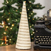 The Table Spruce Tree is a decorative tabletop tree with a thick brown trunk. The tree has long, textured dark green spruce needle branches and a flat base wrapped in a cut of rustic burlap fabric. This tree is ideal for the Winter and Christmas season, displayed on any flat surface among other seasonal rustic tabletop decor. Measures 14” high and 2.25” in diameter.