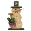 Brad Snowman Ornament is a stuffed snowman ornament with a string hanger attached at the back. Snowman wears a gray knit cap with a buffalo check bow tie and red and black buffalo check scarf. He has rosy cheeks, black beads for his eyes and smile, and has a pine floral with red berries pinned to his side. Snowman has a flat base and can be used to spruce up an end table as well as a tree. Measures 8" high by 3.5" wide.