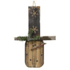 Light Up Snowman w/Pine & Cones, 2 Ft., is a wooden light-up box with a snowman design. It is mostly unpainted, but boasts weathered black paint on its hat and distressed orange paint on its nose. Snowman is accented by a pine and pine cone spray and features two holes on the front for light to shine through and a hole on the back panel for its cord. Cord has a candelabra socket with a 7 watt bulb that lights up the snowman's body and it is open on the bottom for use with flameless candles. Made in the USA. Measures 24” high by 11” wide by 5” deep.