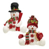 Smilin' Sam Doll is an aged fabric doll with black bead eyes, a stick-like nose, and a stitched smile. His arms are safety pinned on, and he holds a pinecone in one hand and a bucket in the other hand. A fabric scarf and black boots complete his design. Measures 17" high by 7" wide and 2.5" deep.