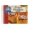 Grandma's Favorites Recipe Book is a spiral-bound, hardcover cookbook that features 224 pages of old-fashioned recipes, from appetizers to desserts. Featured recipes include Smoky Cheese Ball, Baked Ham with Brown Sugar Basting Sauce, Italian Fried Green Tomatoes, and Homemade Ice Cream. Pages also include illustrations and cooking tips. 9.25" high by 6.5" wide.