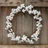 Mini Popping Boll Wreath features mini cotton buds, ivory foam buds, and citron pip berries mixed in with twig and mossy vine on a green-wrapped, floral wreath base. Measures 12" inside diameter and approximately 22" outside diameter.