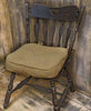 Black Check Chair Pad is made of black and tan gingham fabric, and features a tufted desin and two ties at the back. Measures 15" square.