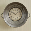 A wall clock with farmhouse character and style, this reproduction of a flour sifter pan makes a decorative clock that will get everyone's attention. Measures 11 1/2" round.