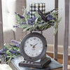 The Lemon Scale Clock is a decorative metal scale with a distressed bright yellow paint. The scale has an old-style clock built into the front, reading “Squeeze the Day” and displaying lemon and white flower art. Display this clock on any tabletop space, alone or filled with candles, greenery, florals, or assorted bowl fillers. Measures 7” high by 5.5” wide by 5” deep. Clock requires one AA battery for operation (not included).