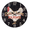 White Enamel Windmill Wall Clock is a lightly distressed, white enamel wall clock with black clock hands and black numbers featured for the 12, 3, 6, and 9-o'-clock hours. Clock includes a keyhole hanger for wall display. Requires 1 AA battery (not included). Measures 14" in diameter by 2" deep.