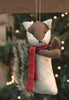 Posey Kitty Doll is a primitive cat doll made of aged, rustic muslin fabric. Kitty has black button eyes, long thread whiskers, and a cheesecloth bow. She holds a bundle of colorful tulips in her lap. Measures 20" high (12" high when seated).