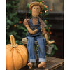 Simple Things Bunny is a fabric bunny doll that features black bead eyes, whiskers, a stick nose, bunny ears, and a red and white check scarf. Bunny is freestanding, holds a sack of florals, and there is a patch that reads, "take time to enjoy the simple things in life" in black text. Measures 12.5" high by 4.5" wide by 3" deep.
