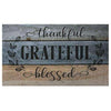 The Farmhouse Star Half Rug is a half-circle floor mat that fits neatly in front of any doorway for a rustic country look. It has 100% natural jute fibers in black and tan, tightly woven and stitched together in alternating bands, accented with screen printed stars. 33" long and 16" wide.