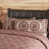 Experience the timeless beauty of the VHC Brands Custom House Burgundy & Tan Jacquard Standard Pillow Case Set, a must-have addition to your primitive country decor. This set includes two 21x30+4 inch rectangular pillow cases crafted from durable twill weave cotton, offering both texture and comfort. With their natural color and classic medallion pattern, inspired by the Custom House Collection, these cases transform your bedroom into a cozy haven with their rustic and decorative appeal. Designed for standard-sized pillows, these cases are more than functional covers - they're delightful decorative accents. The intricate details in the twill weave and medallion design add character and style to your bedding, making them the ideal choice for those who appreciate the fusion of comfort and rustic country aesthetics. Crafted with meticulous attention to detail, these high-quality cotton pillow cases ensure a restful night's sleep while enhancing the primitive charm of your bedroom decor. Elevate the ambiance of your bedroom with the VHC Brands Custom House Burgundy & Tan Jacquard Standard Pillow Case Set and enjoy the cozy embrace of these decorative, standard-sized pillow cases that blend style, comfort, and durability in one.