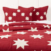 The centered pinwheel of the Ozark King Sham is a rich barn red, beige, black plaid, solid, and stripes embodying a true rustic appeal. Trimmed in stripes over a prairie yellow and reverses to stripes and 3 light wooden button closures.