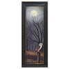 A great folk art print that's a wonderful Autumn accent for a wall or shelf. Quality artist's print of lots of Fall and Thanksgiving-themed motifs and phrases, like "Pumpkins and Spice", "Harvest Moon", "Apple Cider" and "Bittersweet Vines", all in different lettering. The print has a easy-clean textured acrylic coating, and is set in a handmade black wood frame with distressed edges. Measures 19-5/8" x 17-5/8" and is made in the USA!
