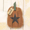 The Farm Fresh Pumpkins Sign, 9.5" Square is a wood-pallet sign with slatted detailing. It boasts black paint with a weathered finish and an orange pumpkin design. It reads, "Farm Fresh Pumpkins," in bold white lettering. It is display ready and is easily hung by the wire hanger attached at the rear. Pair with similar decor for a cozy, down home fall ambience. Measures 9" high by 9.5" wide and 1" deep.