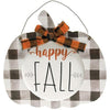 Give Thanks for the Harvest Easel Sign is an assortment of three wooden framed signs featuring festive autumn designs. Each sign has a painted white base with a slightly distressed finish. Autumn phrases and color scheme make these popular for fall displays. The signs each feature a sawtooth hanger on the back for hanging and a peg that can be inserted into a hole on the bottom to allow it to sit on its own as an easel. Designed by Barbara Lloyd each sign measures 6 high by 8 wide and .75 deep. Please note: This item features an assortment of designs which are each sold individually (not as a set.) When you order the price break quantity of 6, you will receive 2 of each style