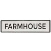 Farm Sweet Farm Sign has a modern farmhouse design that features natural, wood-colored lettering on a slatted, rustic white background. Sign sits recessed within a natural wooden frame. Hangs on two d-ring loops. Measures 5" high by 19" wide and 1" deep.