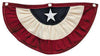 Nice quality American Flag Bunting featuring an embroidered star on dark navy with stripes of red and white heavy weave canvas fabric. It is 30-1/2" wide by 17" high, with 3 grommets across the top. Please note: recommended for indoor use only. Care instructions: wash separately in cold water on gentle cycle. Line dry.